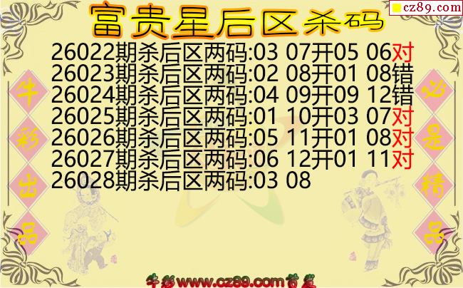 > 大乐透2026028期富贵星后区杀码图谜