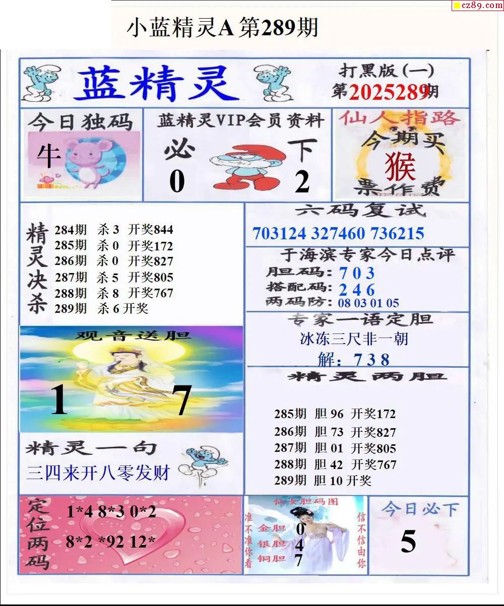 福彩3D2025289期蓝精灵AB版图谜